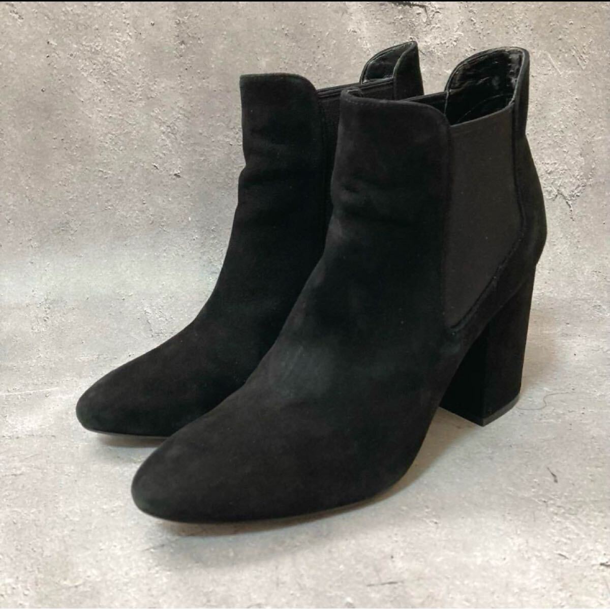 - コールハーン COLE HAAN (8B) スウェード サイドゴアブーツ 黒 ショートブーツ チェルシーブーツ チャンキーヒール グランドシリーズ