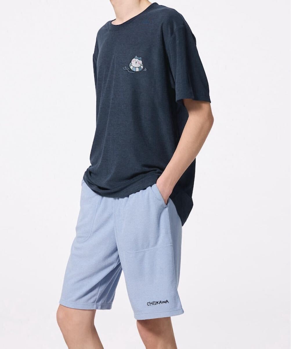 - 即決 新品 GU ちいかわ ドライパイルセット ハチワレ 半袖&ショートパンツ パジャマ ルームウェア Tシャツ ズボン メンズS レディースM〜L