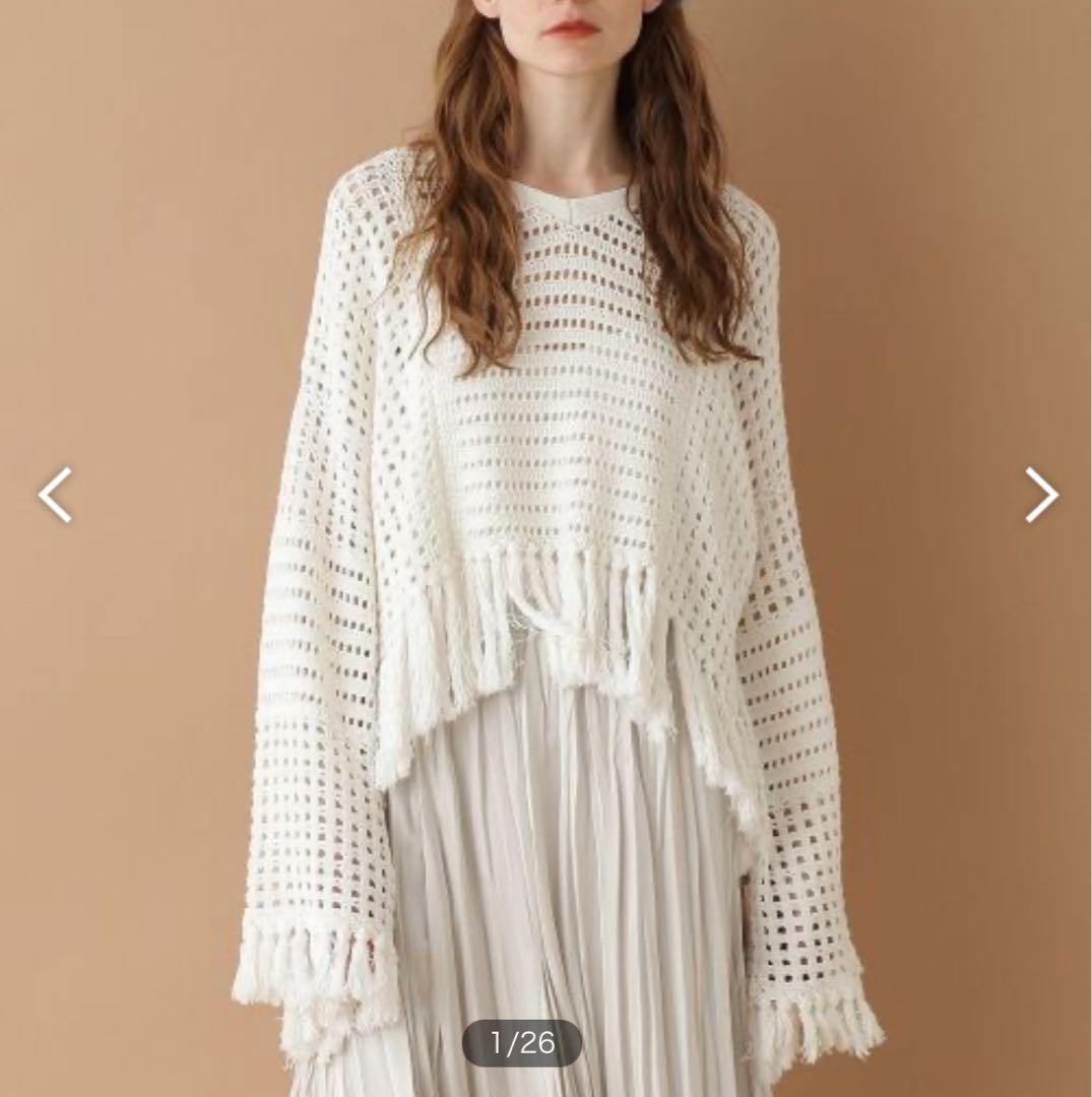 > 【美品】グレースコンチネンタル★フリンジニット トップ ネイビー サマーニット