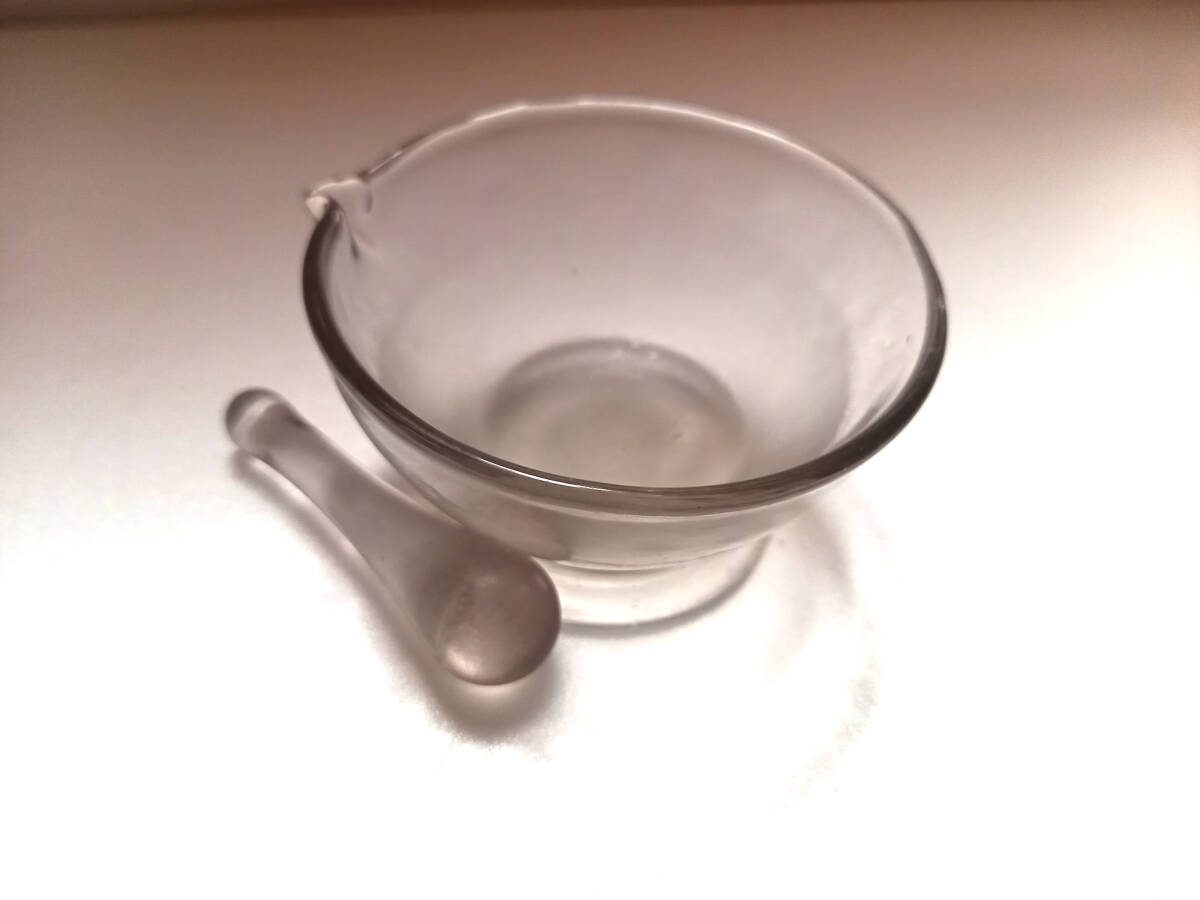 - ガラス製 乳鉢 乳棒 薬鉢 薬研 すり鉢 すり棒 調合鉢 古道具 アンティーク インテリア コレクション ビンテージ 気泡