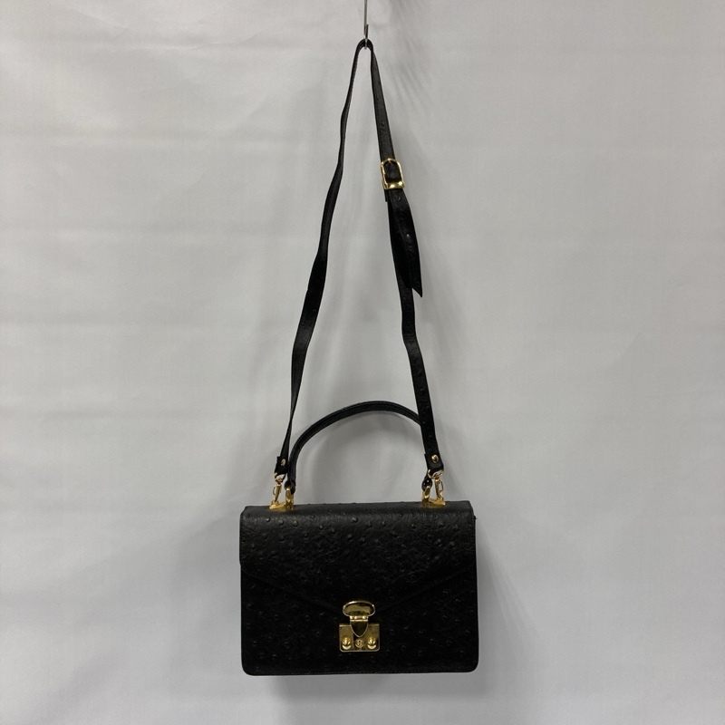 - オーストリッチ/トップハンドル 2WAYショルダーバッグ/ハンドバッグ/ゴールド金具/本革/レザー/着脱式ショルダーストラップ/フラップ
