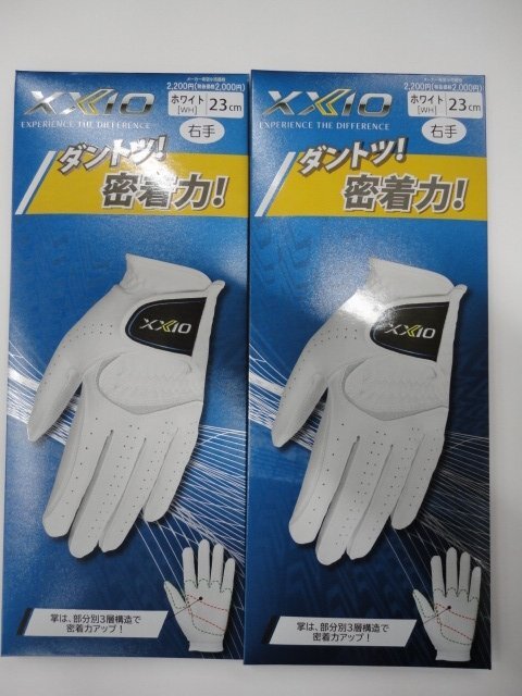 > ■ゼクシオ 高機能 全天候 ゴルフ メンズ 右手用 グローブ x 2枚【WH/23cm】《掌・甲:合成皮革》GGG-X020R