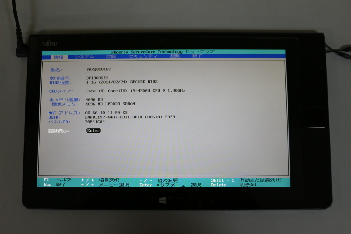 > ジャンク品タブレット 富士通 ARROWS Tab Q704/PV FARQ01018Z i5 メモリ4GB SSD128GB 12.5inch タッチパネル カメラ内蔵 OS無 起動確認済