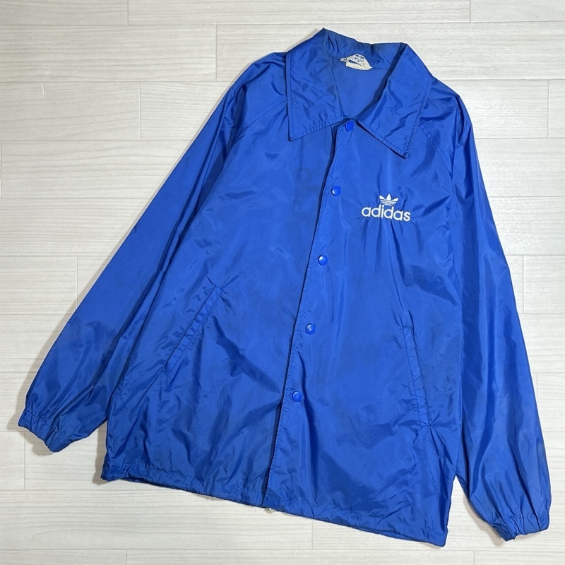 - adidas/アディダス/80s/Nylon Coach Jacket/ナイロンコーチジャケット/ブルー/胸刺繍/トレフォイル/ビンテージ/デサント社製