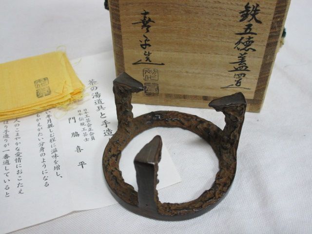- 雉坂★【 日本工芸会正会員 門脇喜平 鉄 五徳 蓋置 共箱 】茶道具・炭道具・釣釜・菊地正直・長野垤志