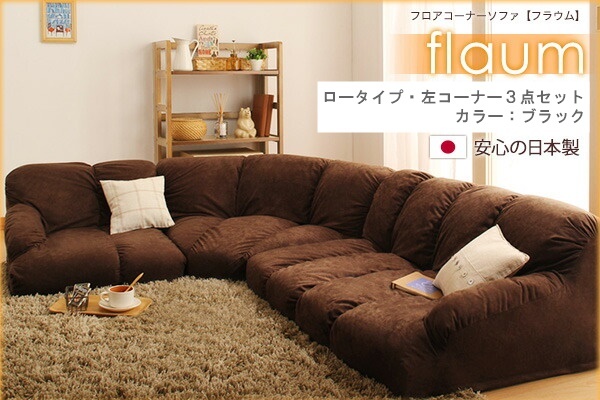 > フロアコーナーソファ flaum フラウム 左コーナーセット ロータイプ 1P+2P+コーナー ブラック