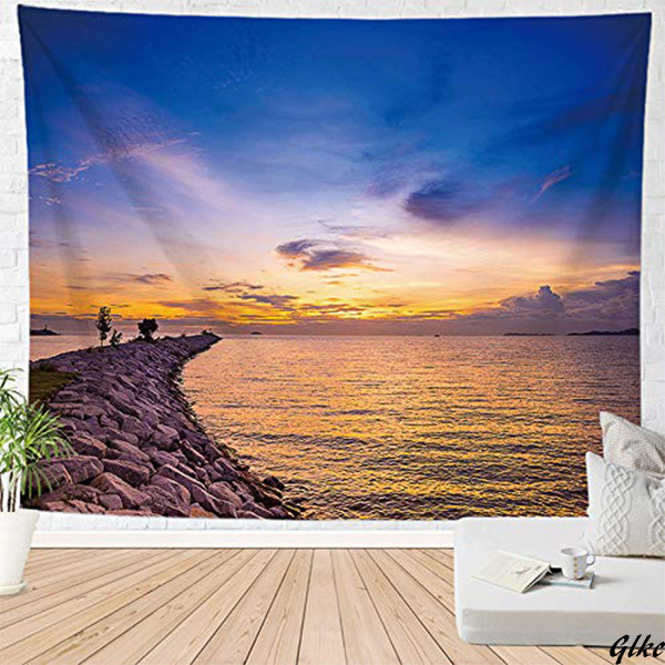 - 【部屋の壁掛けアートやベッドスプレッドとして多用途に使える】 夕焼け 海岸 タペストリー 壁掛け インテリア 模様替え ポリエステル 癒し