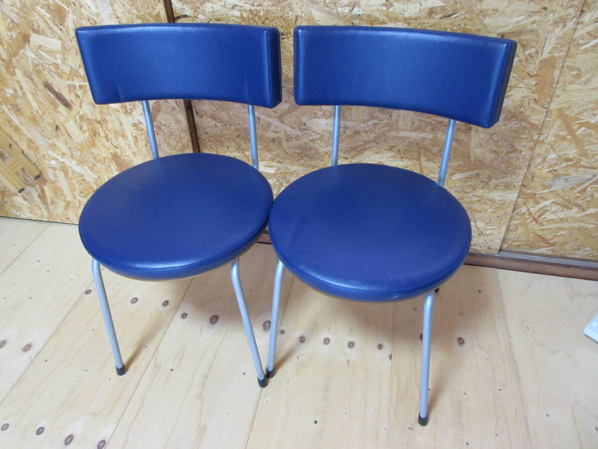> ★ 2脚セット★ 青 スチール椅子 ブルー・ イス 座面 丸 丸型座面椅子 背もたれ付き丸椅子 木製 モダン おしゃれ