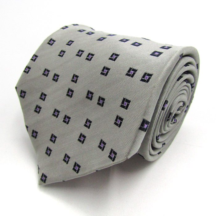 - メンズビギ ブランド ネクタイ シルク 小紋柄 総柄 チェック柄 格子柄 PO メンズ グレー MEN'S BIGI