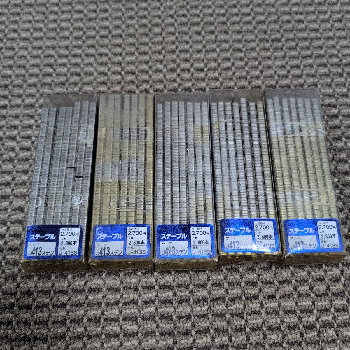 - ジャンク品/長期保管品/中古/WAKAI/ステープル/ステンレス/J-413S/タッカー用/シルバー/MAXODM品/肩幅4mm×足長13mm/1P2800本×5Pセット