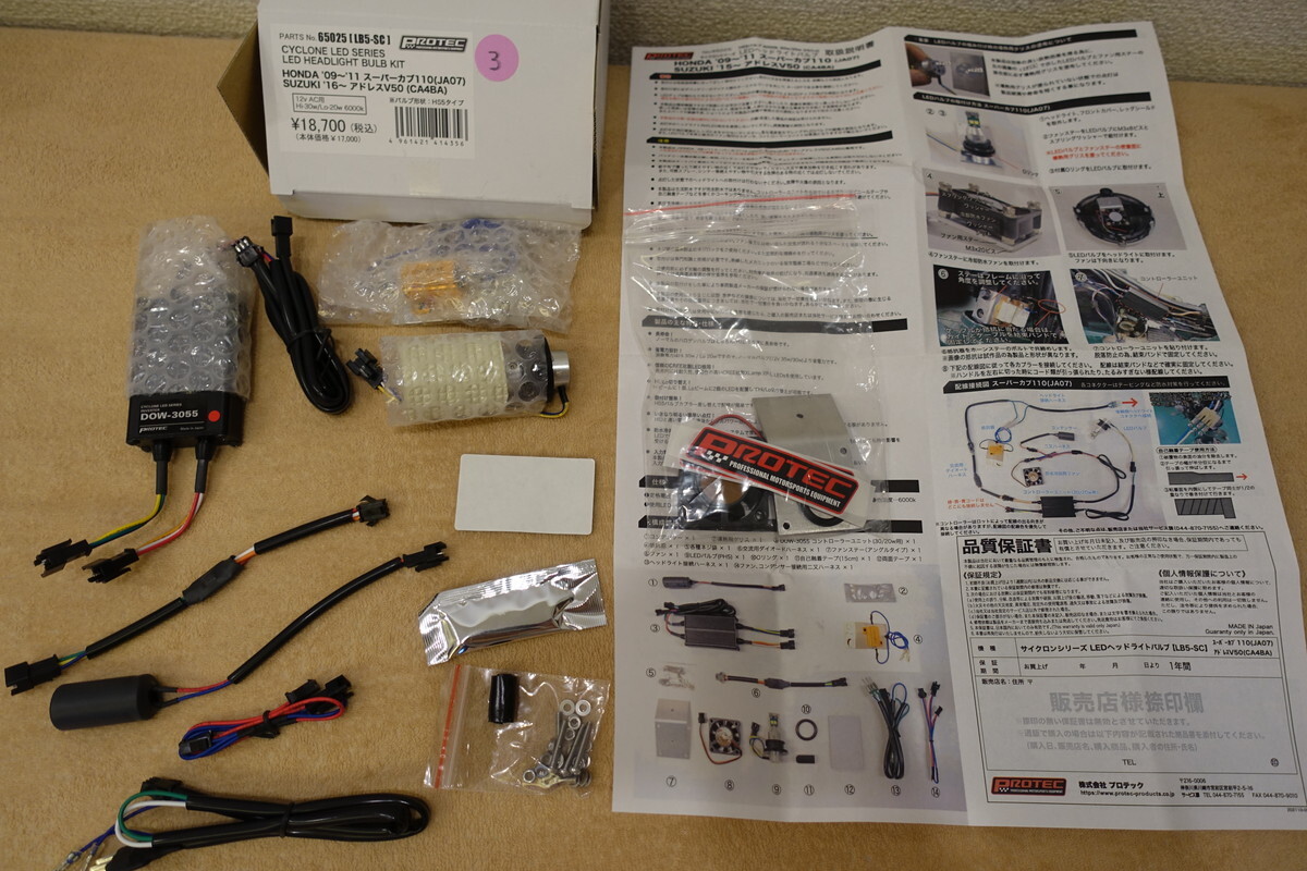 - プロテック スーパーカブ110 (09-11) / アドレスV50 (15-) 6000k LEDヘッドライトバルブ サイクロンシリーズ 65025 定価18,700円 PROTEC 3