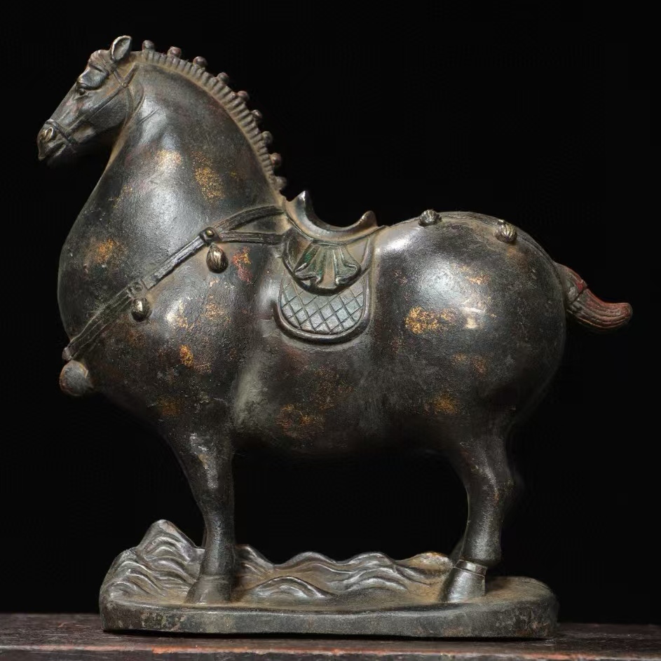 - 仏像 明代 旧蔵 大明宣徳年 制古銅拓金【唐馬】 銅製 銅琉金 仏教 唐物 收蔵品 時代物 古美術 細密造 古置物 希少珍品 供養品 5.31