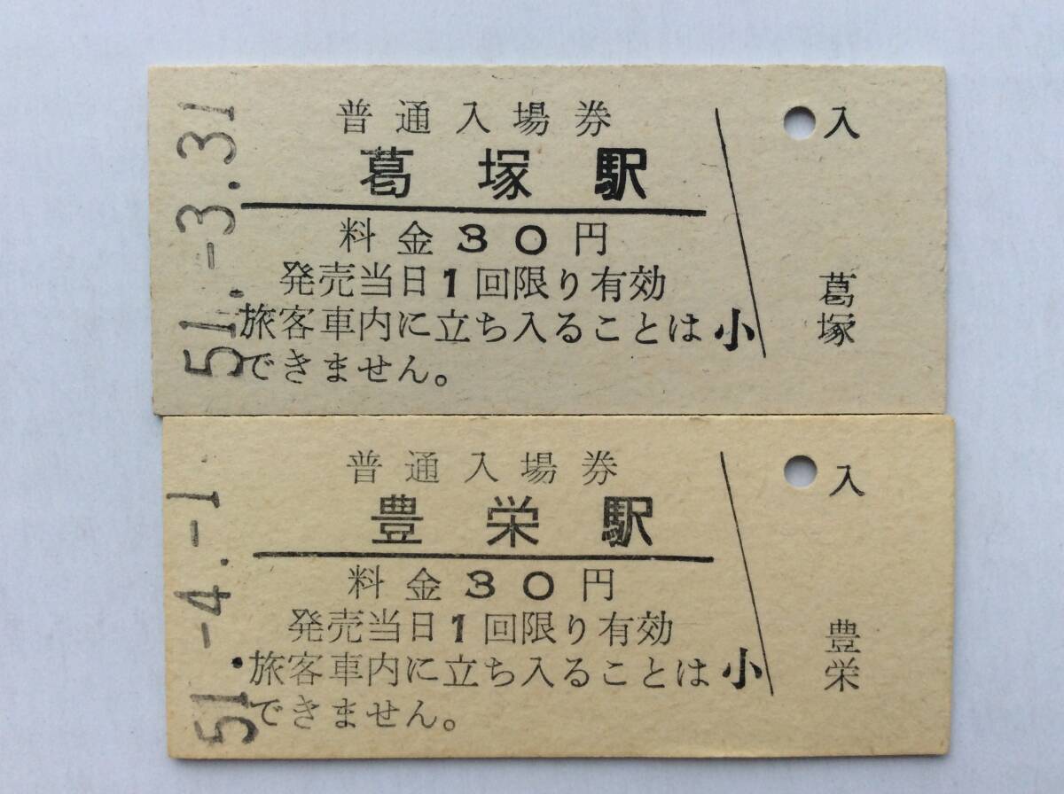 - 国鉄 白新線 駅名改称最終日初日入場券 葛塚駅 豊栄駅 昭和51年 2枚一括