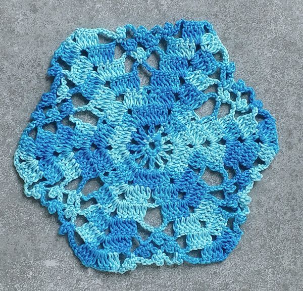 - ハンドメイド レース編み ドイリー コースター 水色 12.5cm