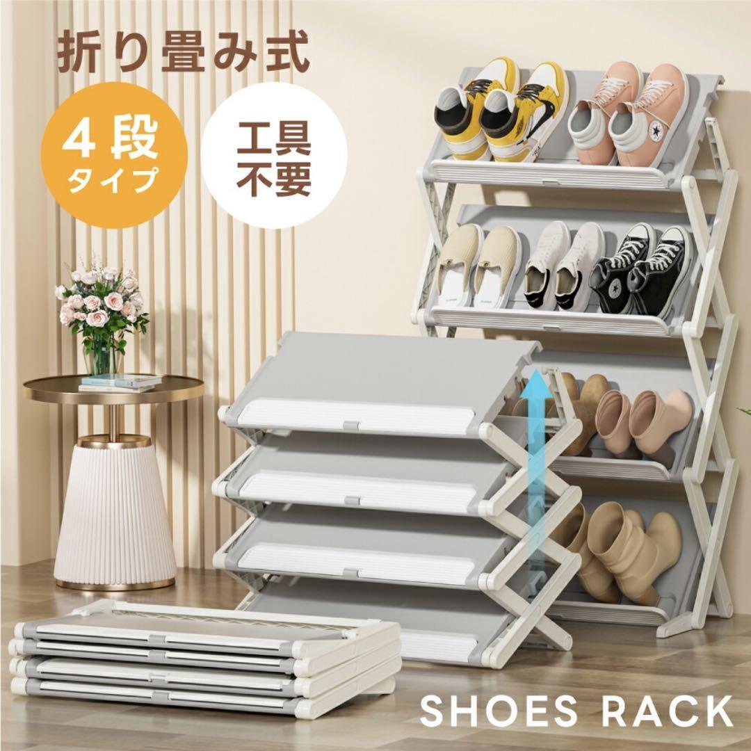 - シューズ 靴ラック 省スペース 折畳式 玄関収納 靴棚 下駄箱 靴収納 大容量