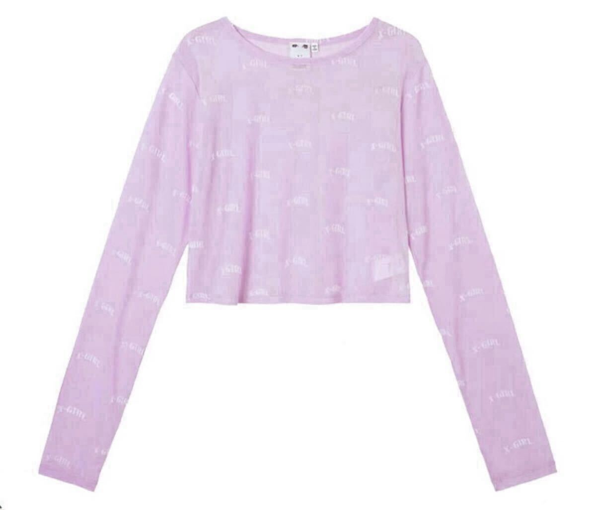- 定価7700円 X-girl「ロゴ シースルー 長袖 トップス」ライトパープル 未使用品 エックスガール M Y2K