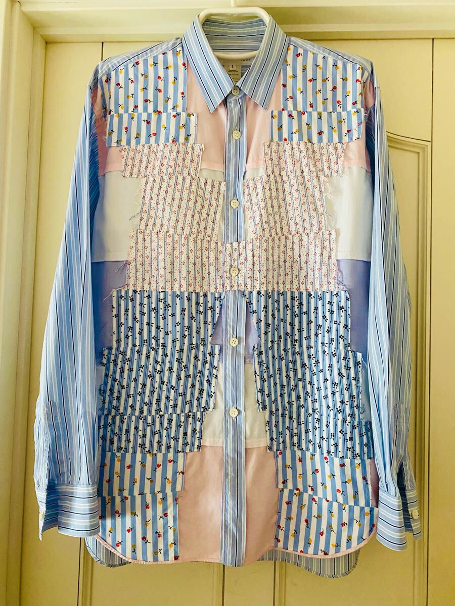 - コムデギャルソンシャツ COMMEdesGARCONS SHIRT ストライプ パッチワーク 長袖シャツ 価格相談可
