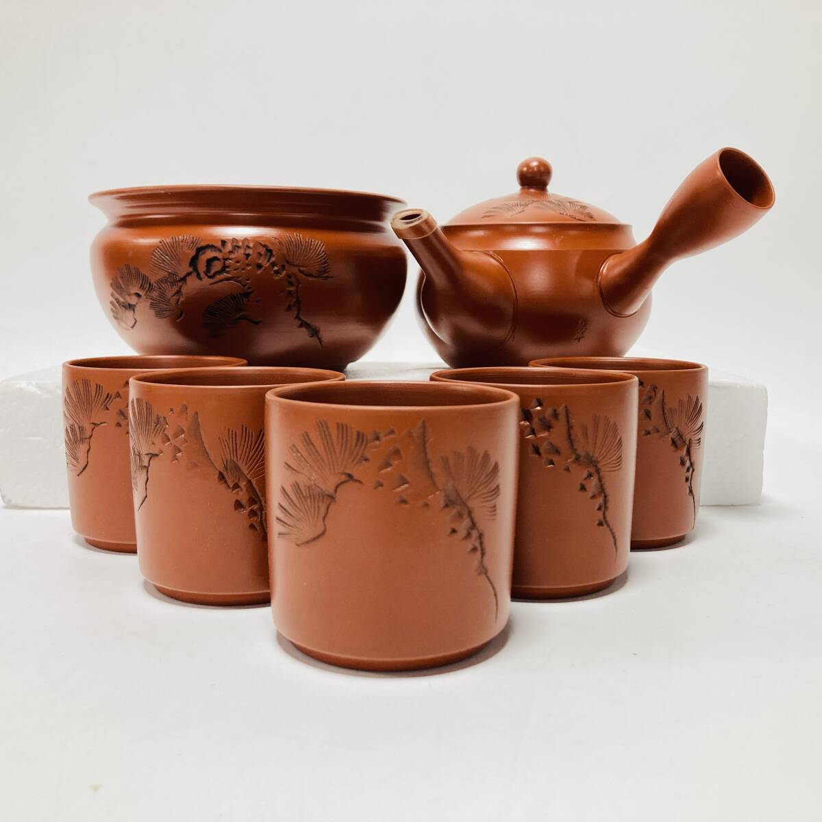 - 【61812C】未使用 南景窯 常滑焼 朱泥焼 手作り 急須 湯呑 湯冷まし 茶道具 茶器セット 7点セット 現状品 経年保管品