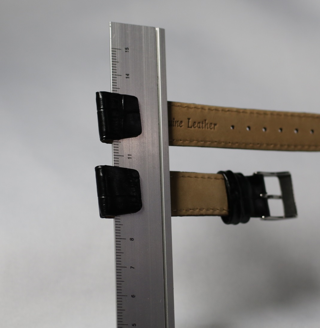 - 18㎜ オープンエンド 固定ラグ 黒・ブラック アリゲーター・ワニ型押しSS銀色尾錠 イタリアンカーフ 新品