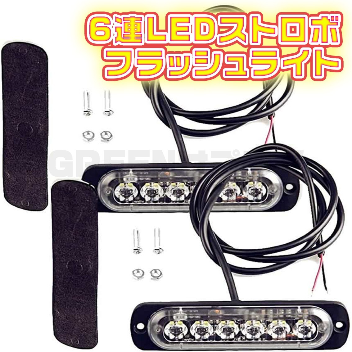 - フラッシュ 6連 ストロボ LED ライト 2個セット ホワイト 12V 24V