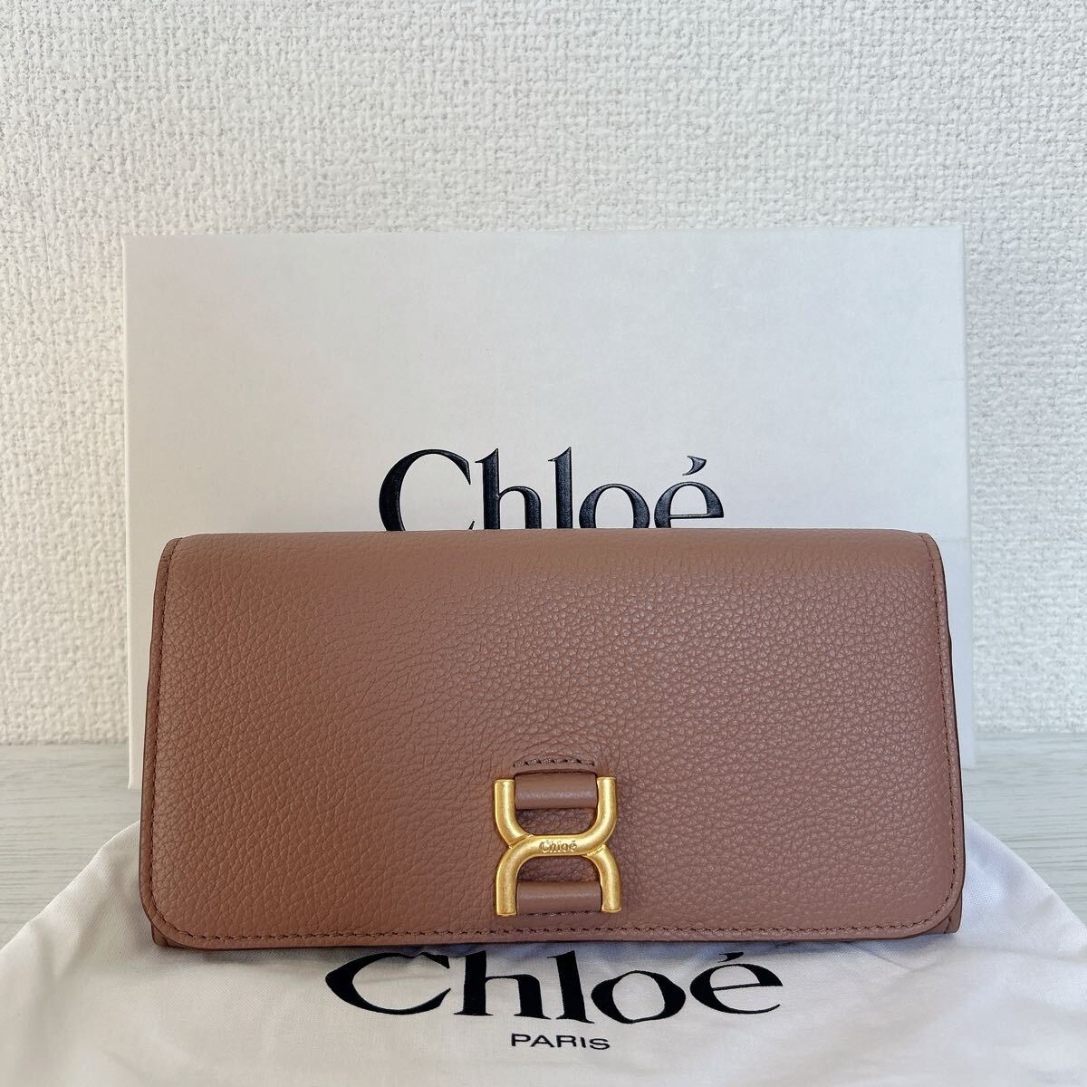 > 新品未使用 Chloe クロエ レディース 長財布 革財布 折り財布 MARCIE マーシー ウッドローズ ピンク ゴールド金具 カーフスキン レザー