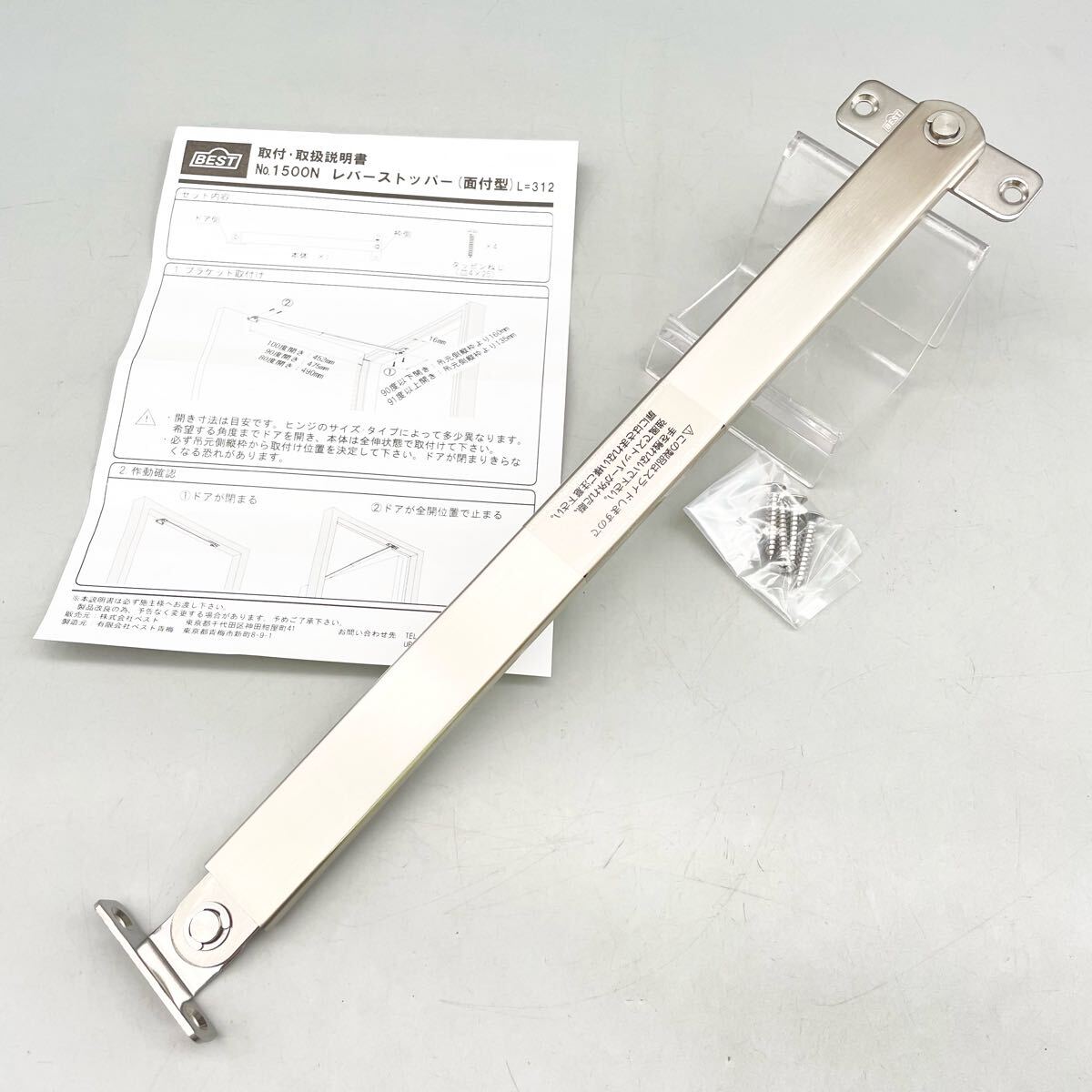 - [新品 未使用品] BEST ベスト No.1500N レバーストッパー 面付型 335-550mm シルバー ドア 扉 スライド ストッパー 建具 金物屋 在庫品