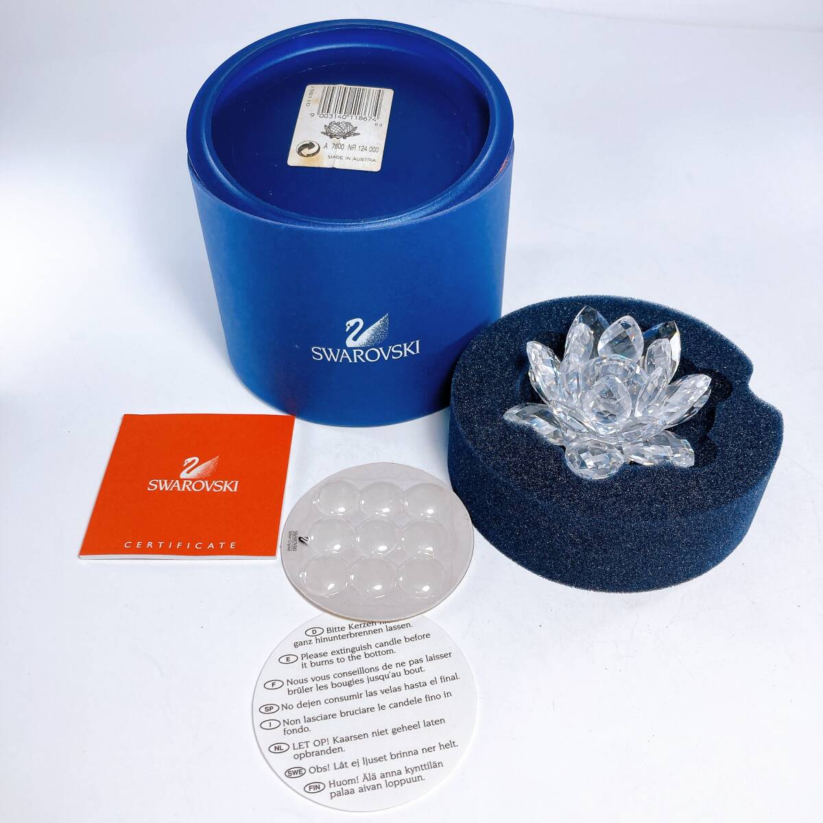 > |1521|【未使用】SWAROVSKI スワロフスキー スイレン 睡蓮 キャンドルホルダー クリスタルガラス フラワー 蓮の花 置物 ☆