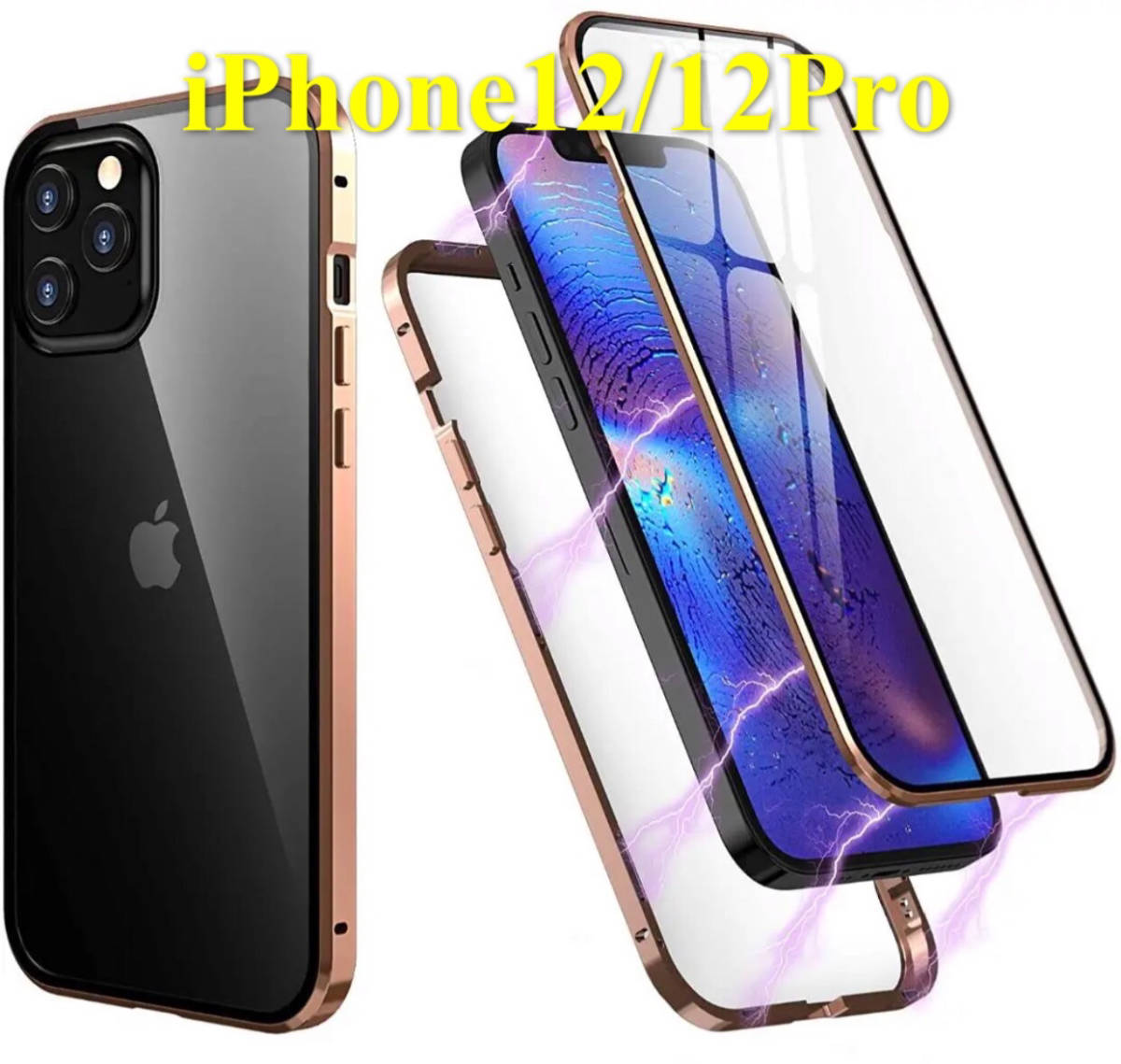- iPhone 12/12Pro ゴールド 両面ガラス アルミ合金 全面保護 磁石吸着 耐衝撃 iPhone7/8/SE2/7Plus/8Plus/X/XS/XR/XSMAX/11 Pro max ケース