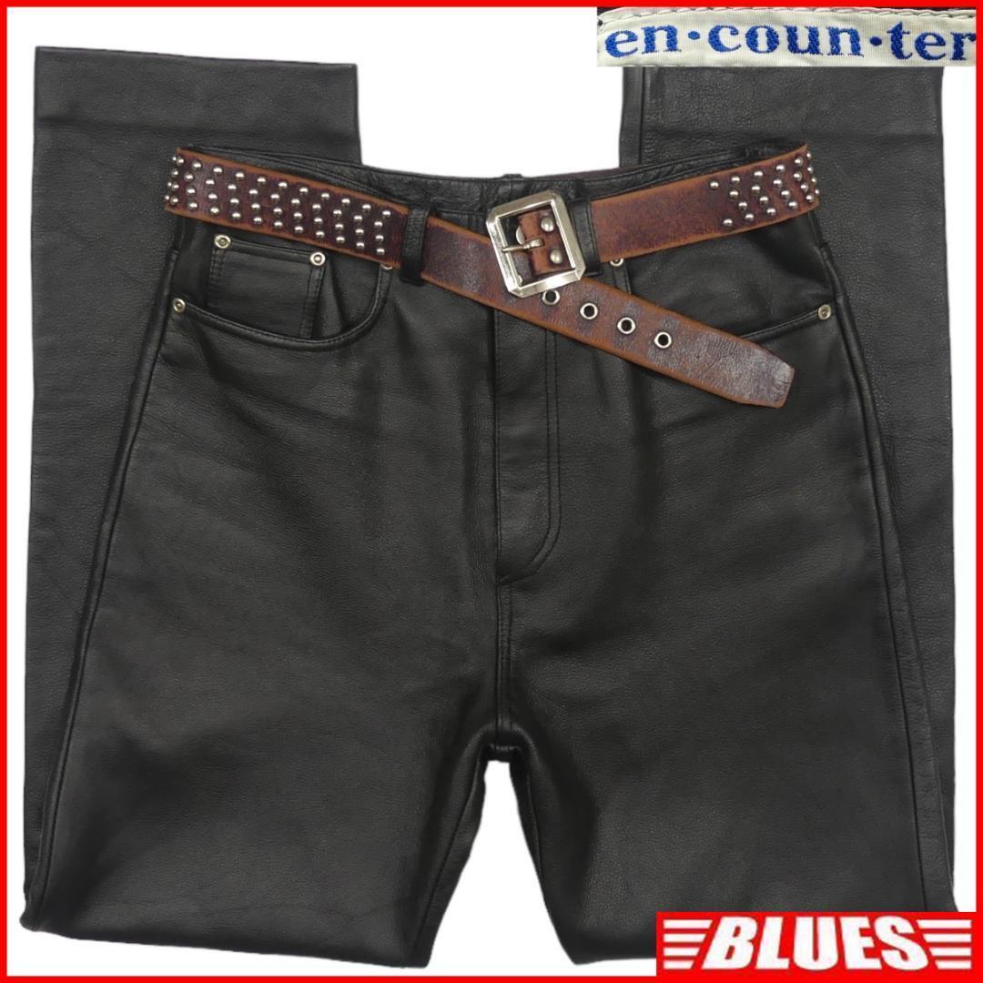 > 即決★en・coun・ter★XL レザーパンツ エンカウンター メンズ LL 黒 本革 ライダースパンツ 本皮 パンクロック ライディング ツーリング
