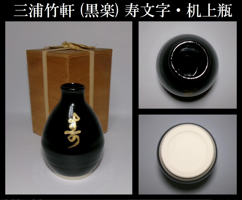 - 【真作保証】三浦竹軒 (黒楽) 机上花瓶