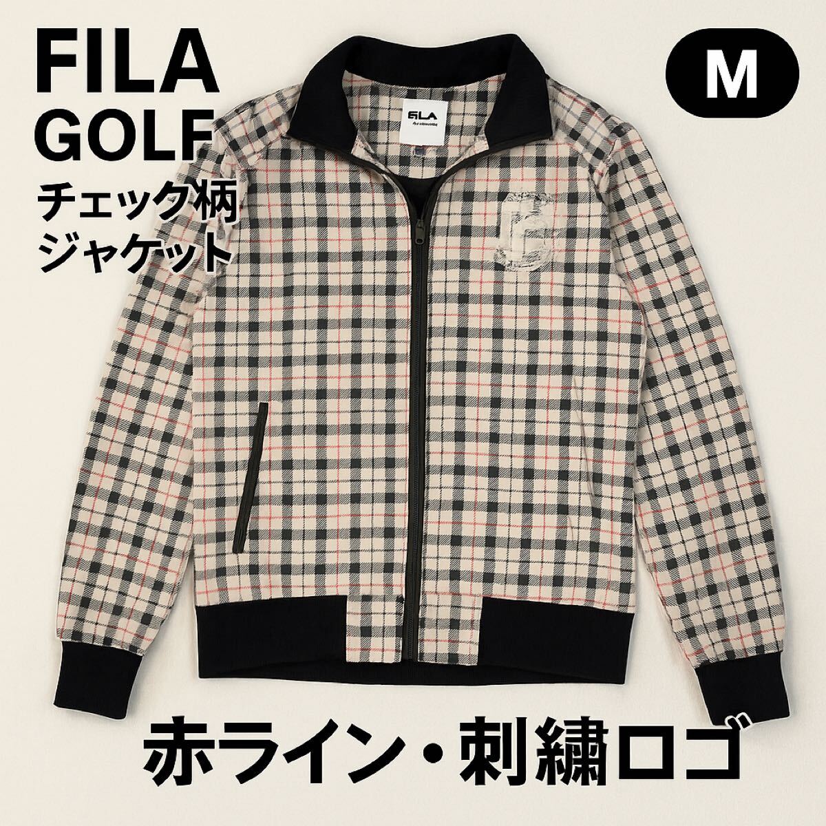 - FILA GOLF メンズM ジャケット チェック柄 赤ライン 刺繍ロゴ