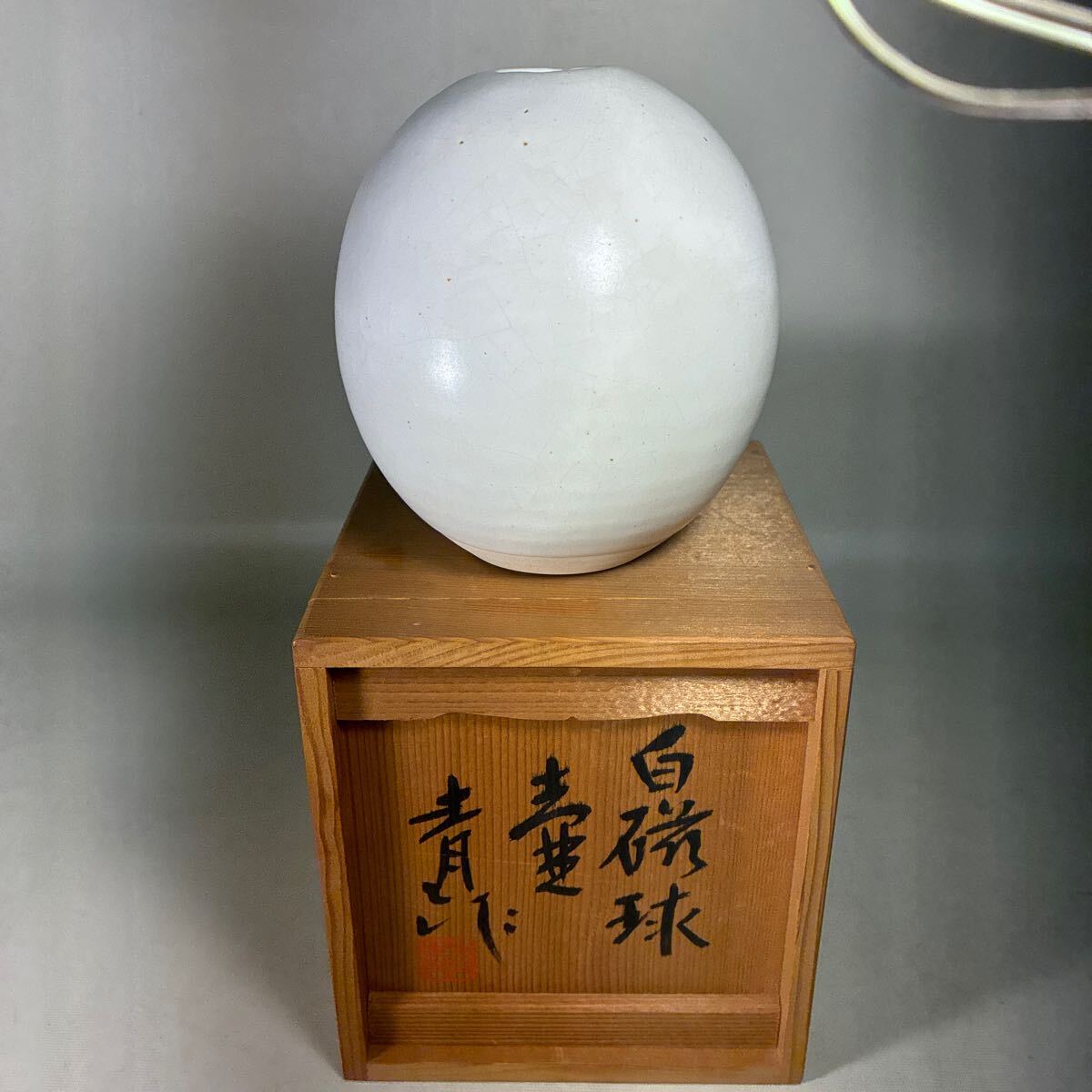 - 鈴木青々造 白磁球 壺 花器 花瓶 一輪挿し