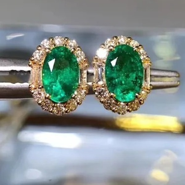 高級天然エメラルドピアス、シルバー925、韓国ジュエリー