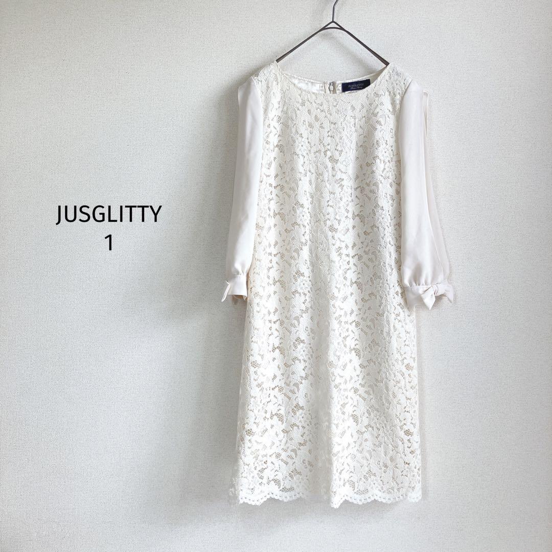 - ジャスグリッティー 膝丈ワンピース【1】七分袖 リボン レース シフォン