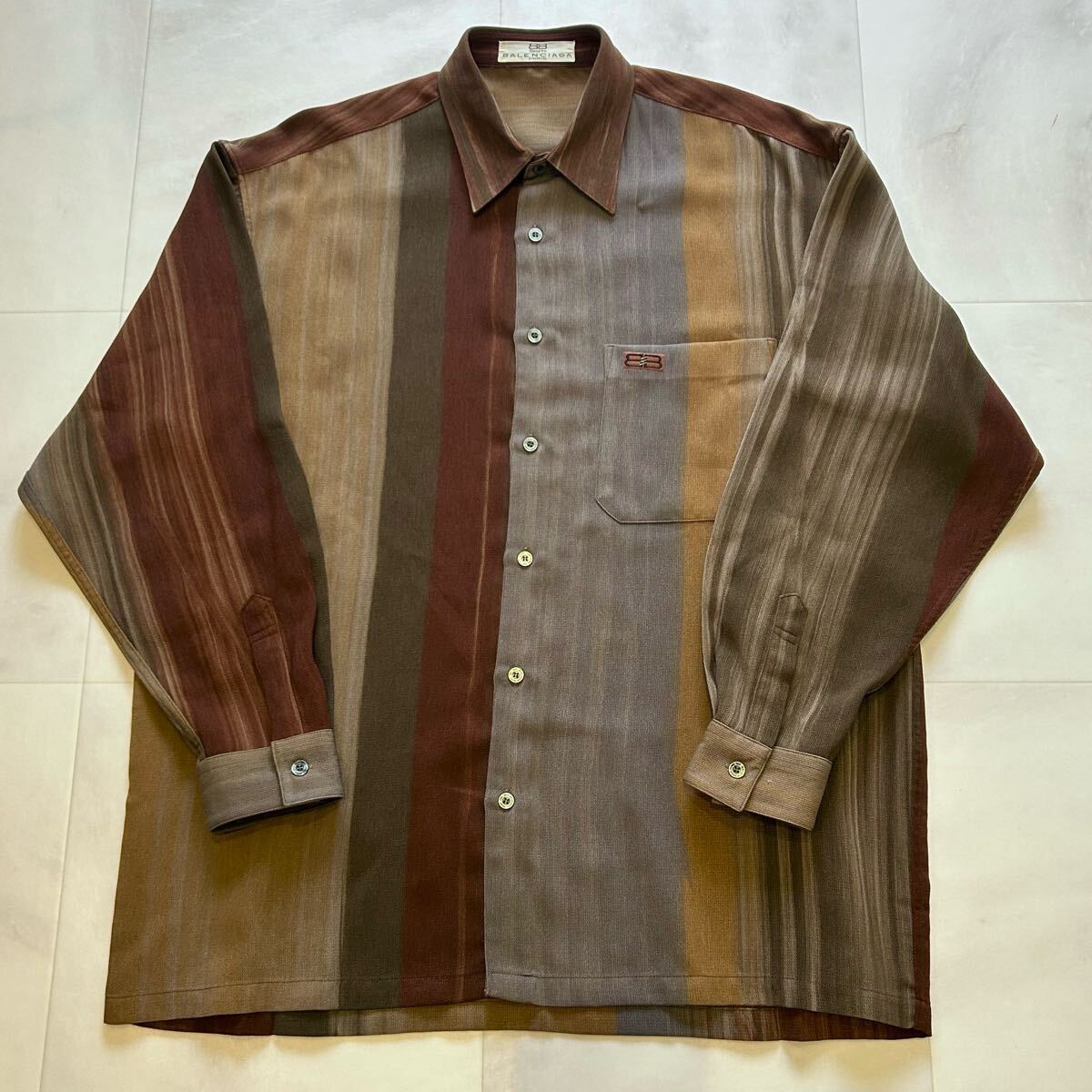 > 90s BALENCIAGA PARIS バレンシアガ ロゴ 刺繍 ストライプ ビンテージ 長袖シャツ ポリエステル100%