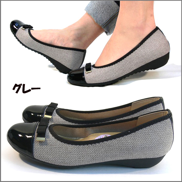 > 38lk 送料無料 アーチコンタクト パンプス 靴 日本製 パンプス 黒 痛くない ローヒール ぺたんこ 母の日 ウェッジリボンパンプス 走れる