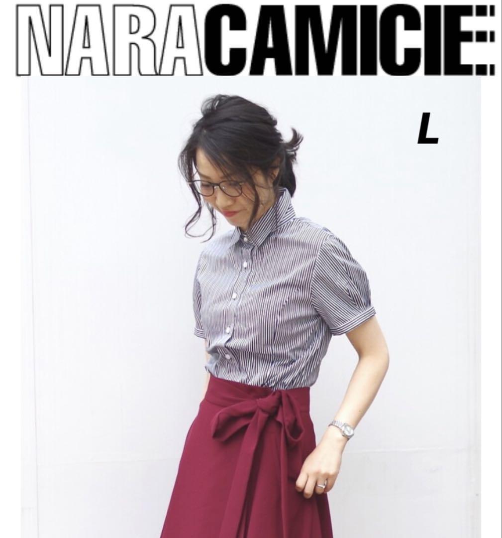 - NARACAMICIE ナラカミーチェ ペンシルストライプ ラメ 半袖シャツ パールボタン L 黒