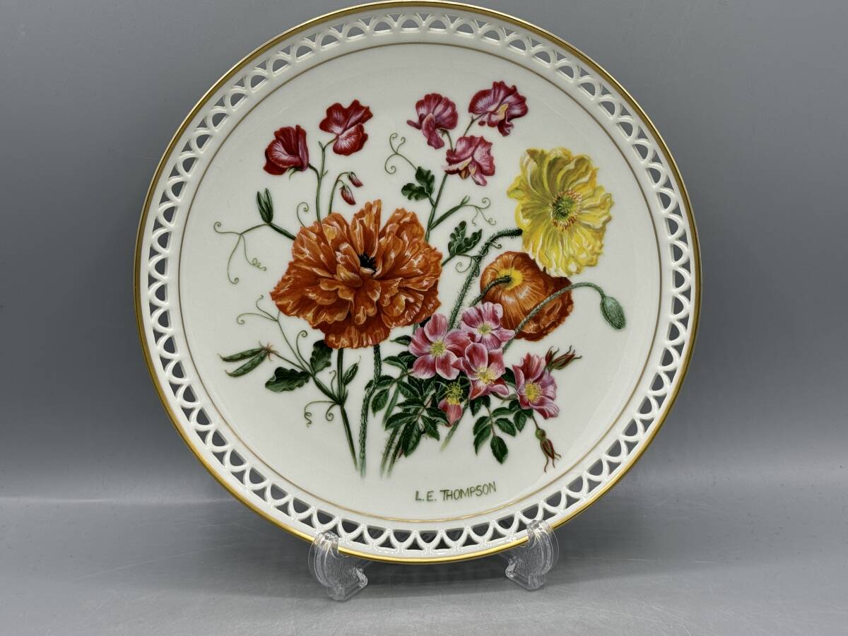 > レア 限定品 ビングオーグレンダール B&G 8月 透かし彫り 花 ピアス ガーデン 皿 デンマーク ロイヤルコペンハーゲン (#-15)