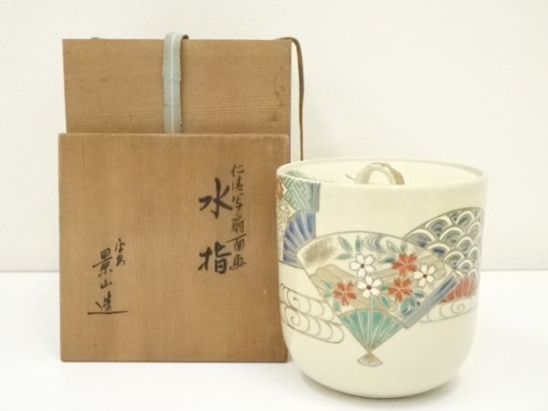 - ys7407317; 京焼 加藤景山造 仁清写扇面画水指(共箱)【道】