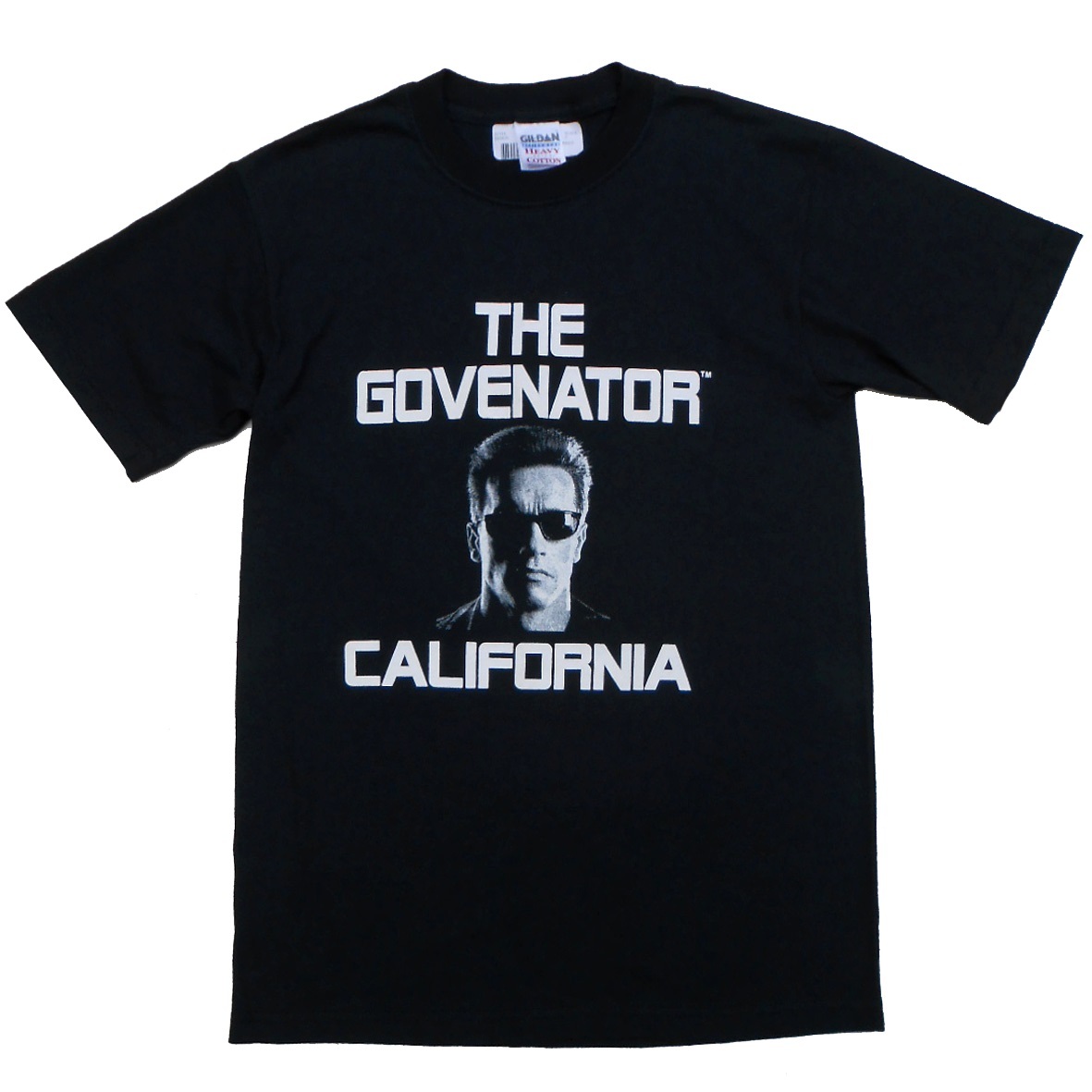 - 未使用 アーノルドシュワルツェネッガー 半袖 プリント Tシャツ 黒x白 S 州知事販促 THE GOVENATOR Arnold Schwarzenegger ターミネーター
