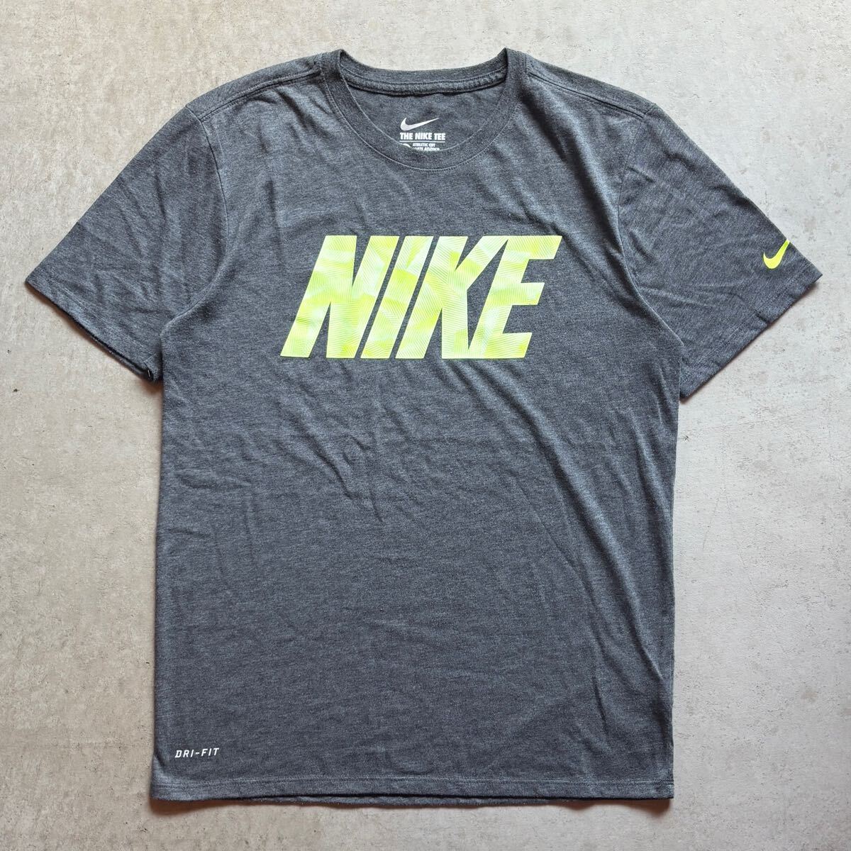 > 【NIKE】ナイキ 半袖 DRI-FIT ドライフィット Tシャツ Tee クルーネック メンズ M 灰/GRAY スウッシュ ロゴ プリント スポーツ ウェア 正規