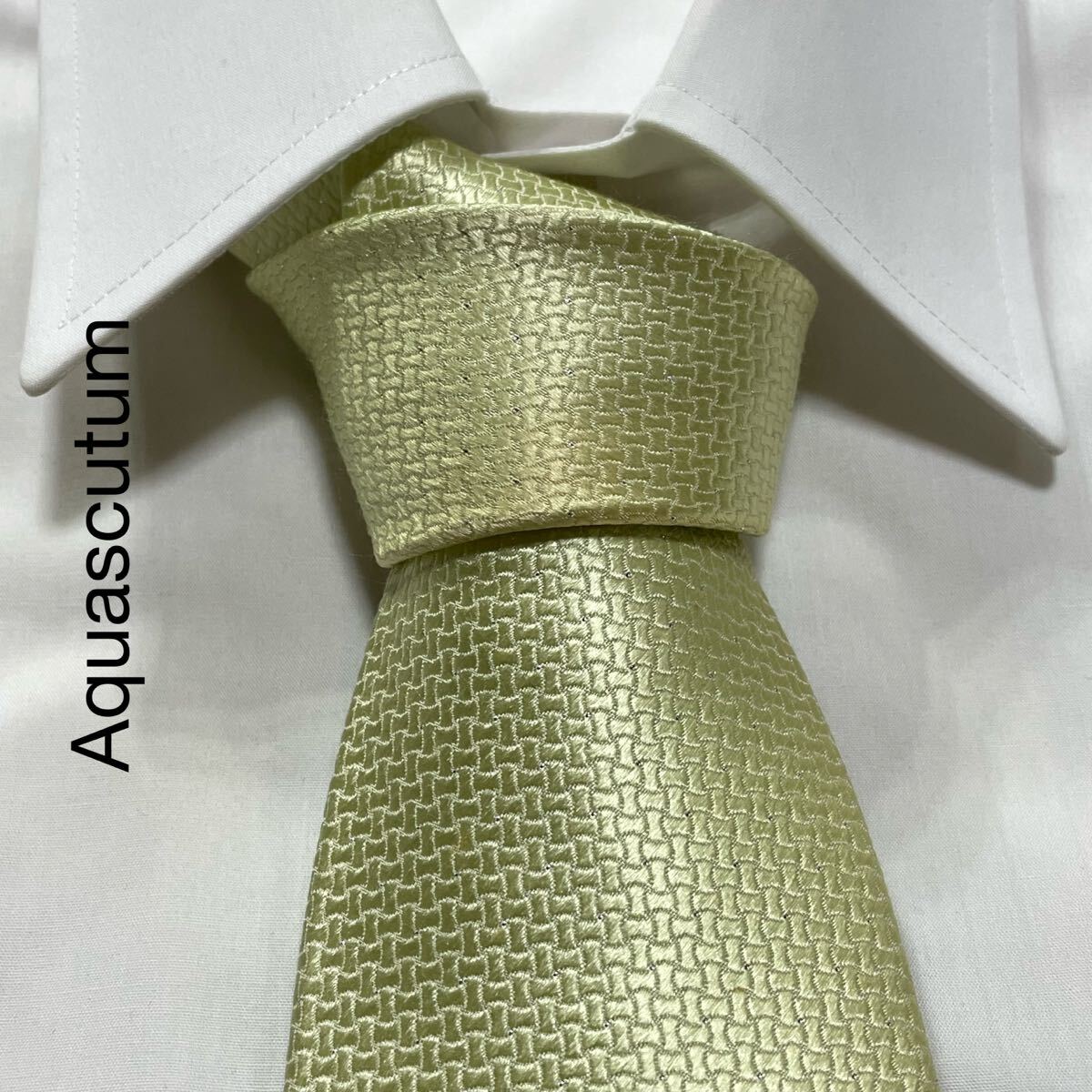 - Aquascutum アクアスキュータム ジャガード ドット 光沢 デザイン シルク ネクタイ イエローグリーン TG1533