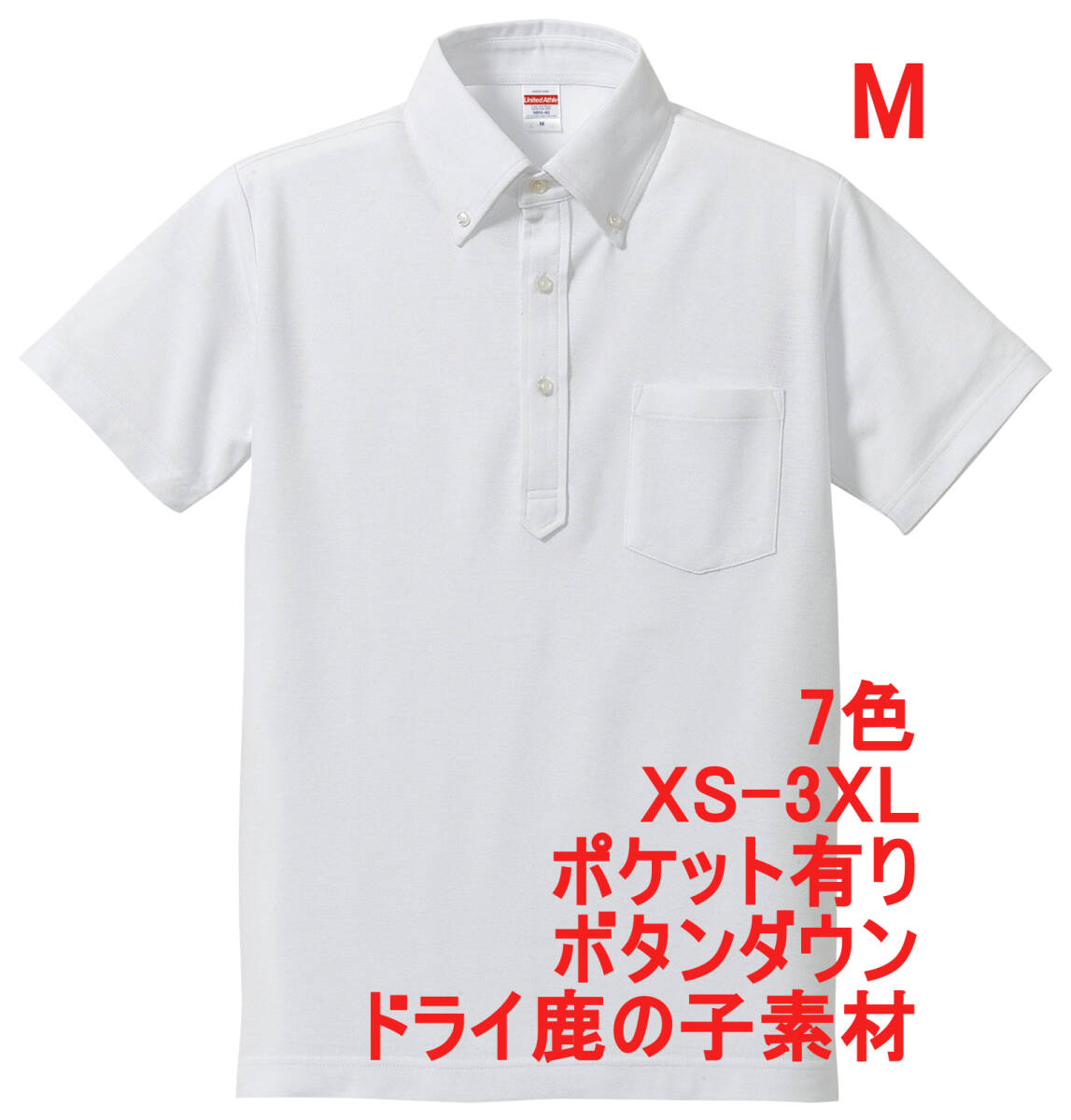 - 【訳有】505101 M ホワイト ポロシャツ メンズ 半袖 ボタンダウン ポケット付 鹿の子 5.3oz 無地 ユナイテッドアスレ