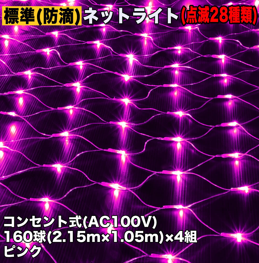 - クリスマス 防滴 イルミネーション ネット ライト 網状 電飾 LED 640球 (160球×4組) ピンク 桃 28種点滅 Bコントローラセット