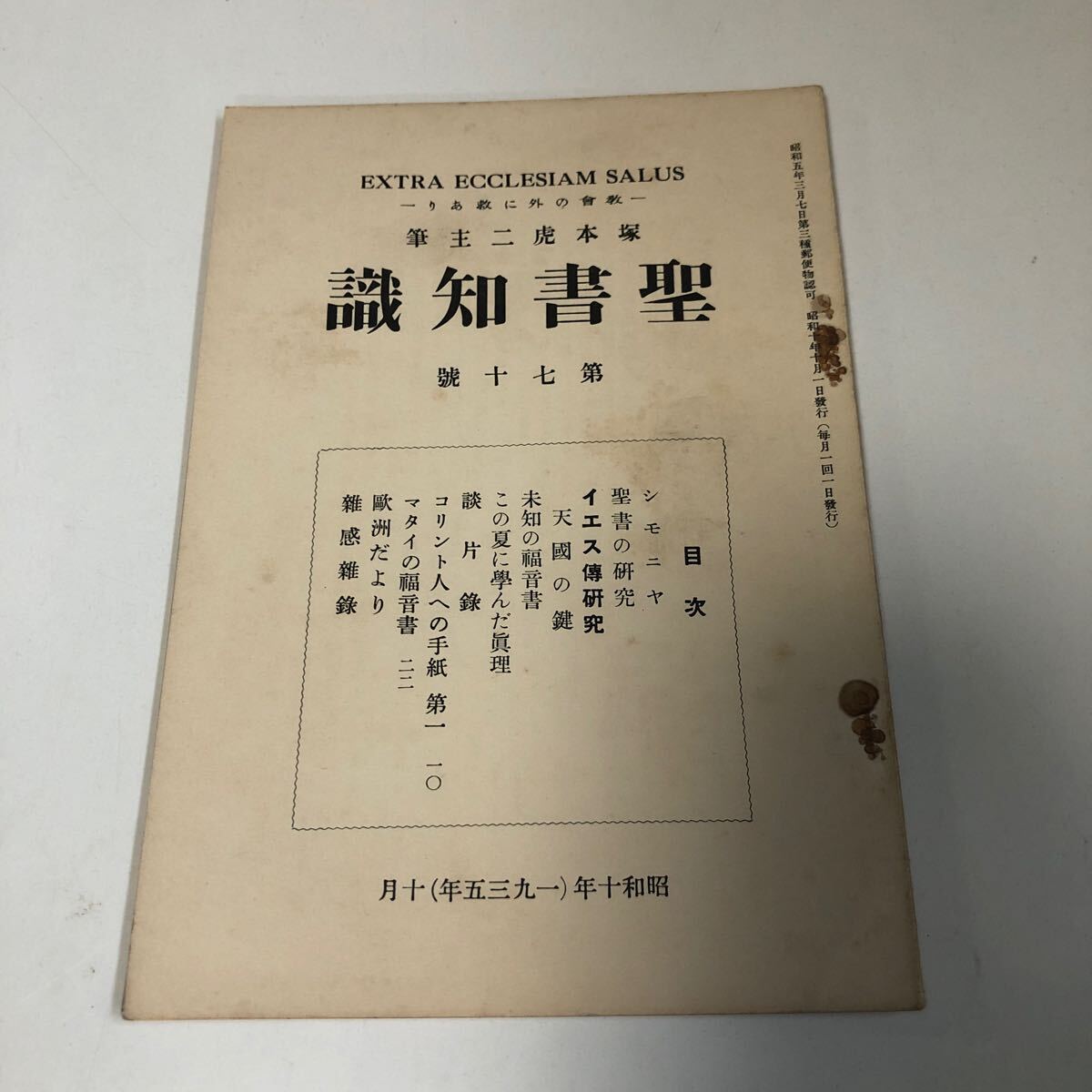 - M5i-023 聖書知識 塚本虎二 第七〇號 昭和10年 昭和初期 1935年 イエスキリスト キリスト教 70号