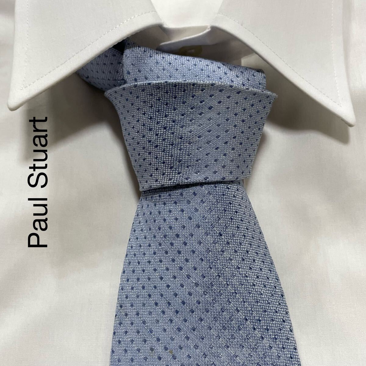 - Paul Stuart ポールスチュアート ドット ジャガード シルク リネン ネクタイ イタリア製 ライトブルー TG1660