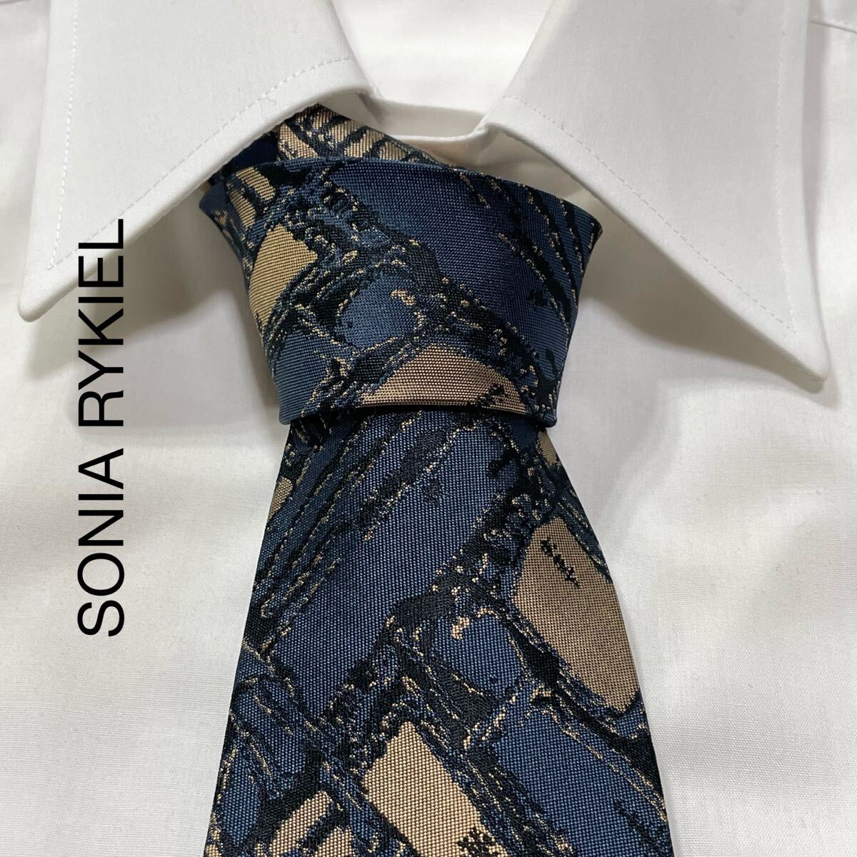 - SONIA RYKIEL ソニアリキエル アート ジャガード シルク ネクタイ ネイビー ライトブラウン ブラック TG1684