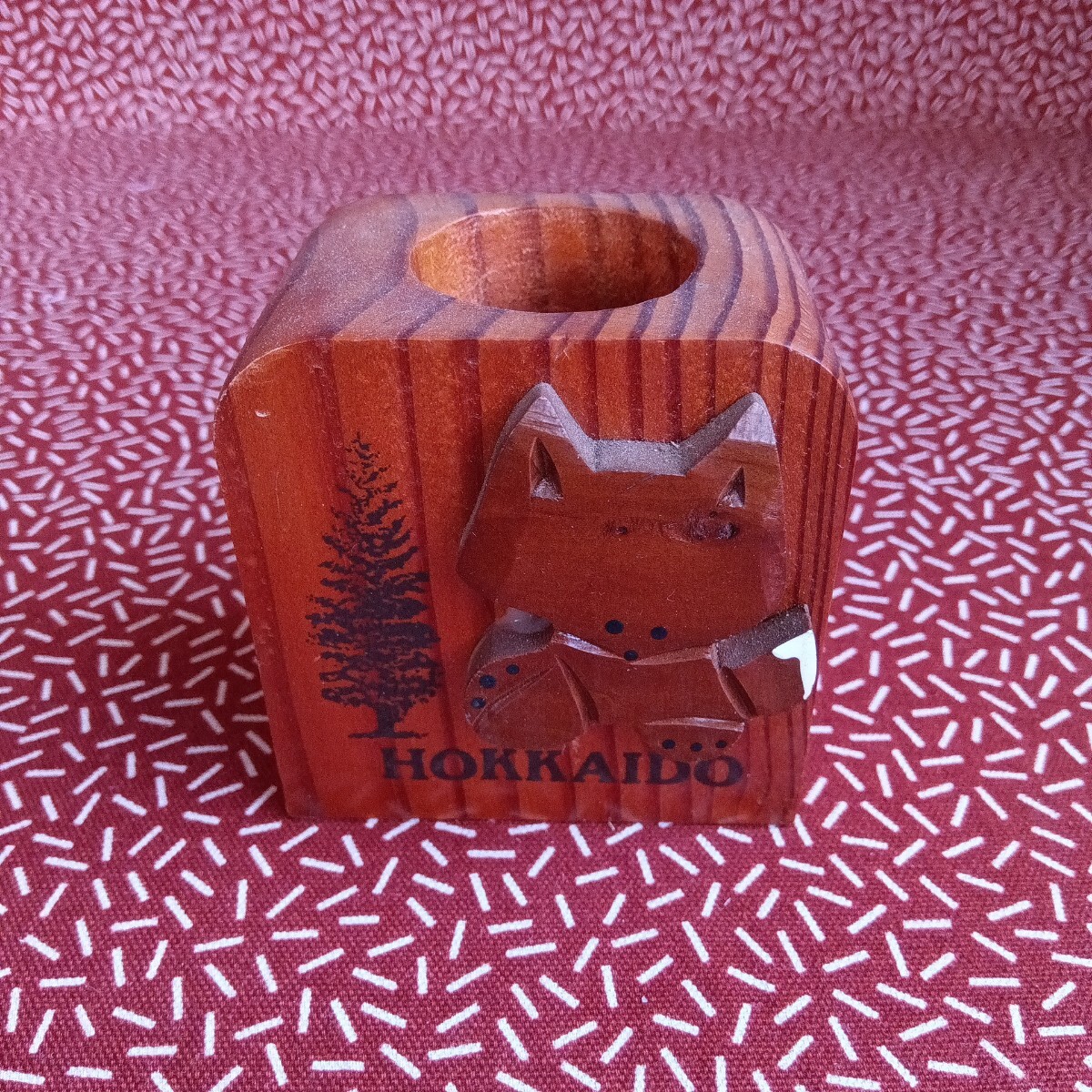 - 中古☆ 置物 鉛筆立て 雑貨 土産 昭和 レトロ キツネ 北海道 HOKKAIDO ペン立て 民芸品 観光地