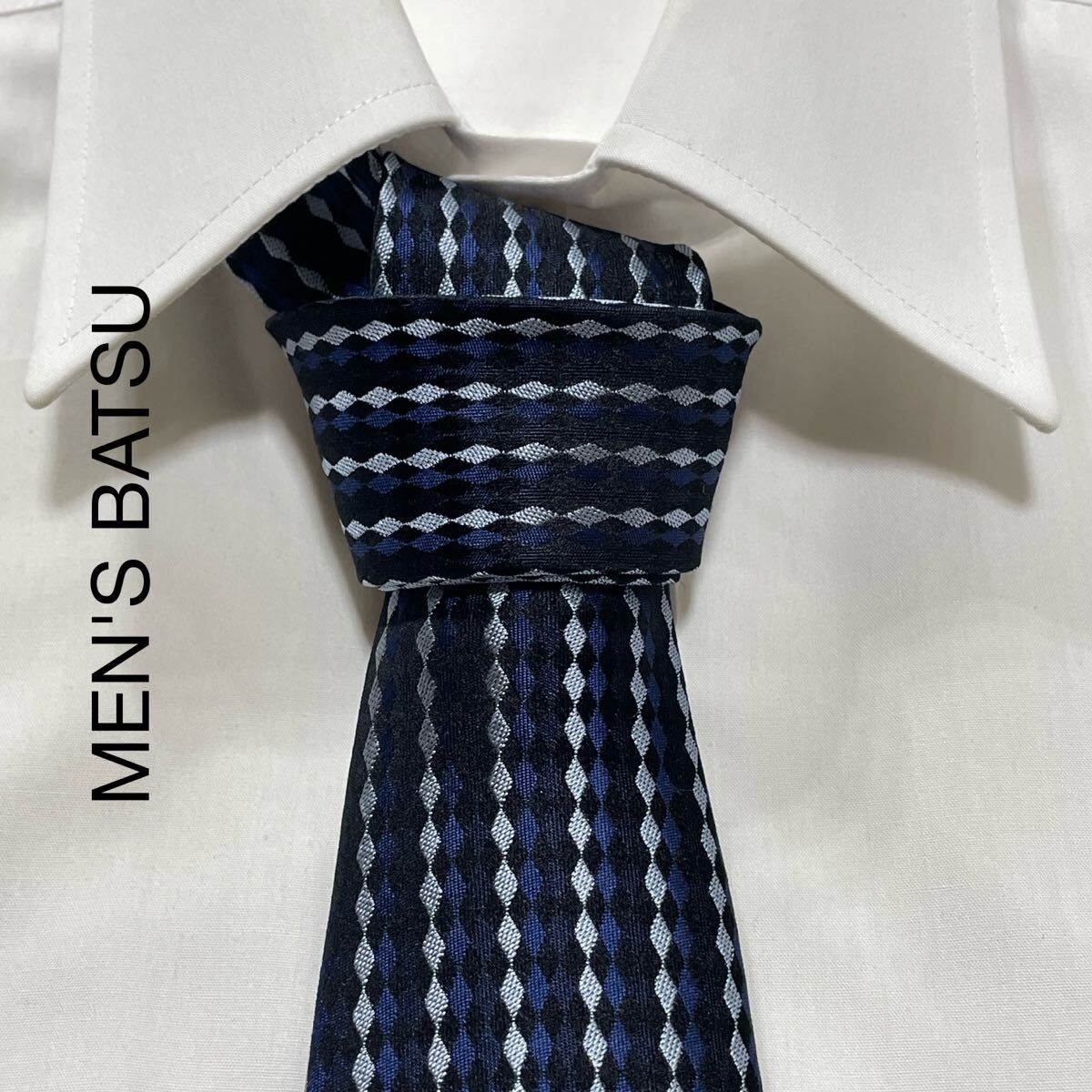 - MEN'S BATSU メンズバツ ひし形 ジャガード シルク ネクタイ ネイビー ブルー ライトブルー TG1706