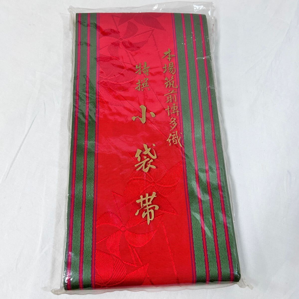 > ★美品★本場筑前博多織 特撰 小袋帯 半幅帯 吉弥帯 正絹 博多帯 浴衣帯 帯 夏帯 赤×緑 巾15cm 長さ352cm 着物 浴衣 女性 (06077並